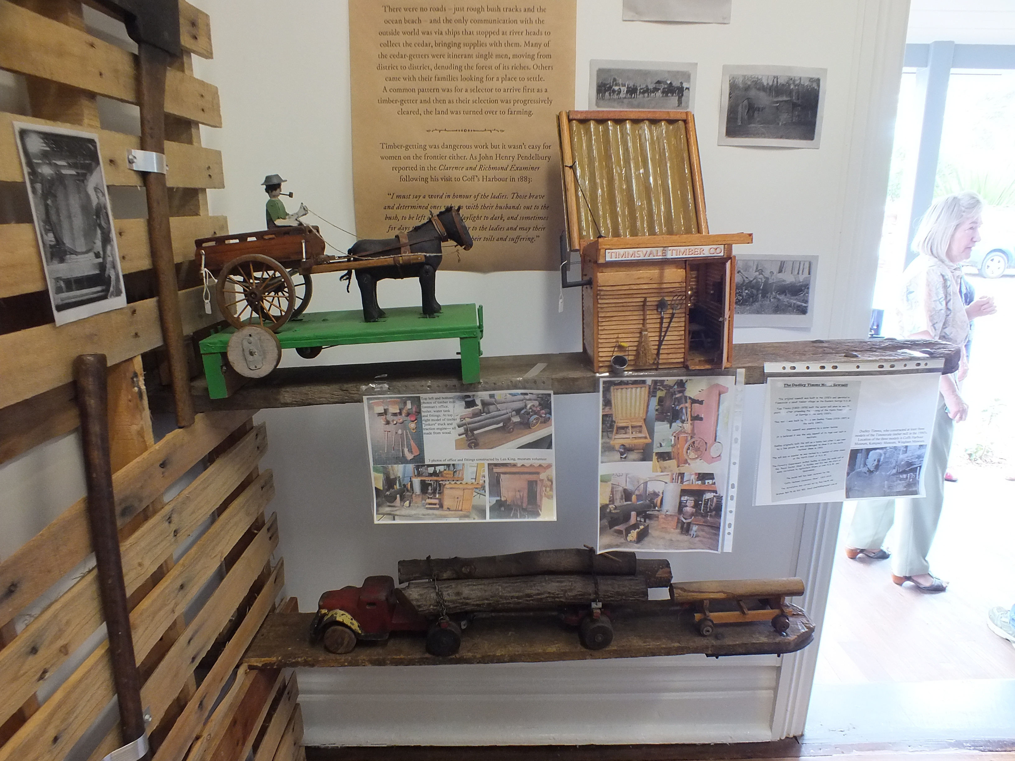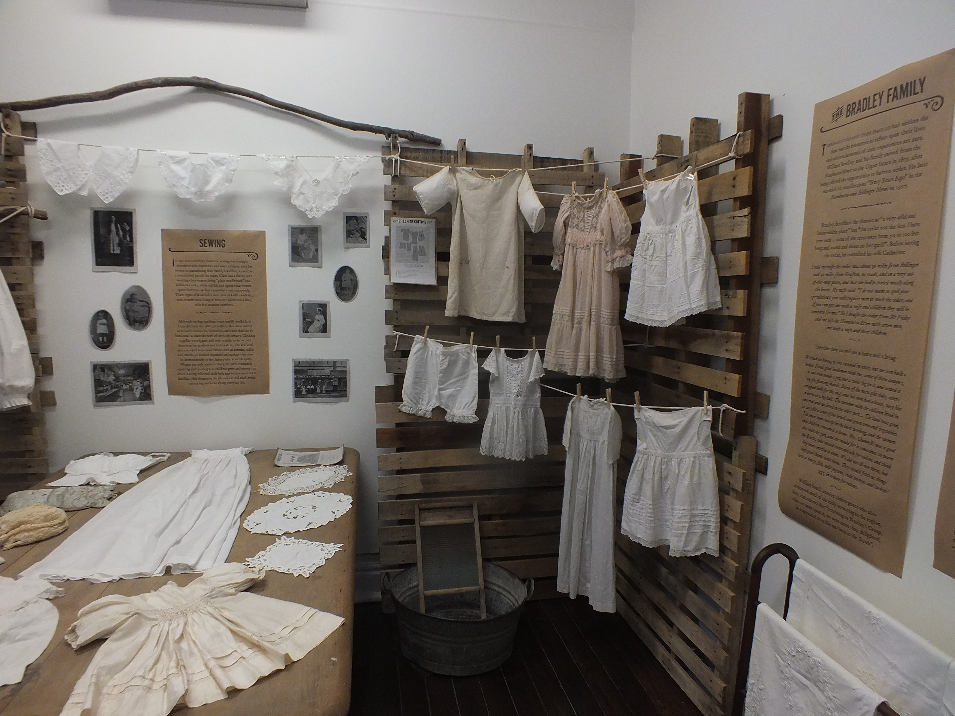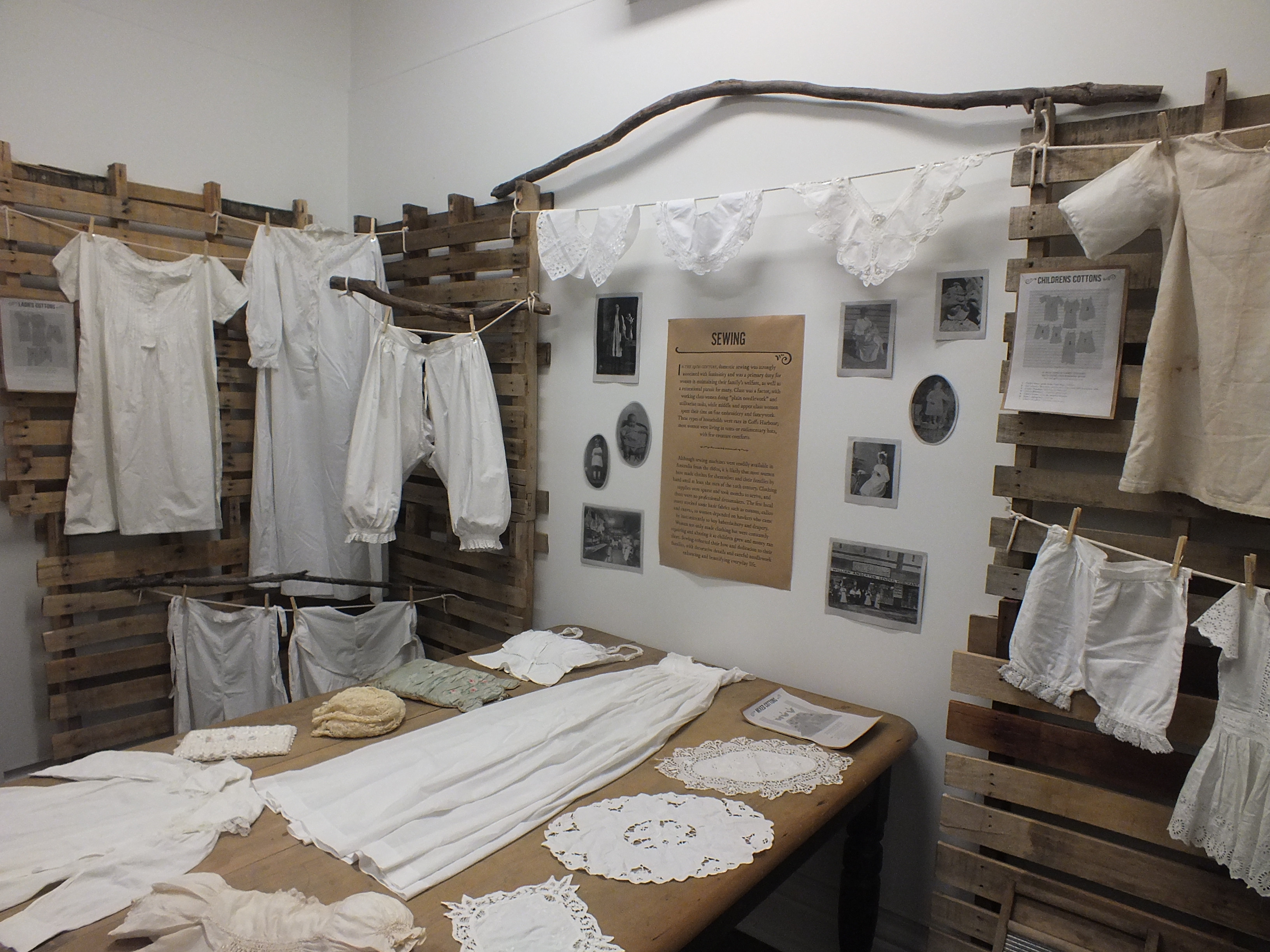 This exhibition highlights the differing experiences of work for men and women in the early days of European settlement of the Coffs Coast region. While timber was one of our foundation industries, the domestic work of women also built our community.