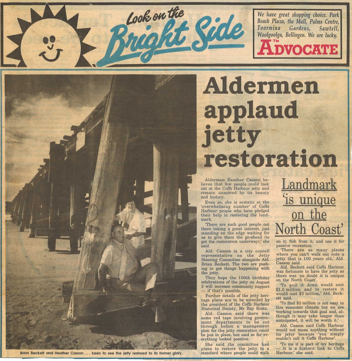 North Coast News, Councillors Brian Beckett and Heather Casson sitting on a jetty footing, 1992 (1992). Coffs Collections, accessed 19/03/2026, https://coffs.recollect.net.au/nodes/view/45091